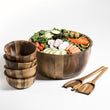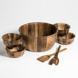 Gorgeous 7 piece set includes a large bowl, 4 individual bowls and 2 piece serving utensils. The perfect hostess gift. Classic design focuses on the natural element of the wood. Made from environmentally friendly Acacia wood. Distinctive grain. Cleans up easily by wiping with a damp cloth.