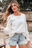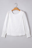 Allison Eyelet Embroidered Smocked Cuff Sheer Blou