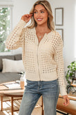 Ariella Up Drop Shoulder Sweater is the piece you'll reach for when you want to look put together in seconds. This open knit cardigan is stylish with a bit laid-back vibe. Midweight sweater yarns made with an open stitch and ribbed details. The zipped front design allows flexible adjustable wearing. It’s ideal for layering on a cool day when you want warmth without too chunky. Material: 100%Acrylic.