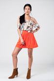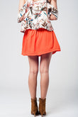 Orange mid waist mini skirt. The skirt has aztec embroidery at the bottom and at the top.