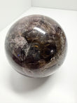 This authentic Super 7 sphere from Brazil is a rare and powerful combination stone, naturally formed with seven minerals in one crystal: Amethyst, Clear Quartz, Smoky Quartz, Rutile, Goethite, Lepidocrocite, and Cacoxenite.