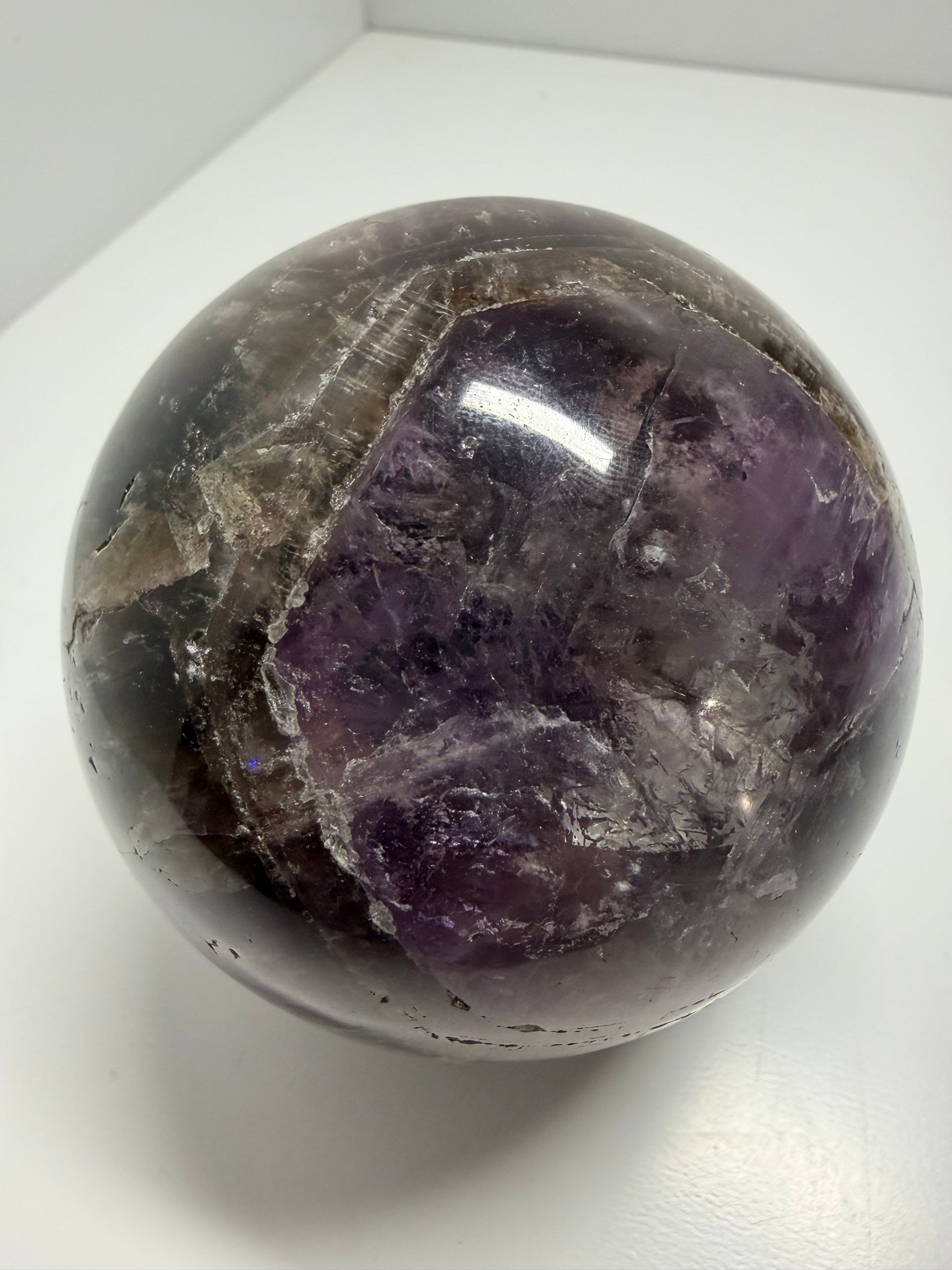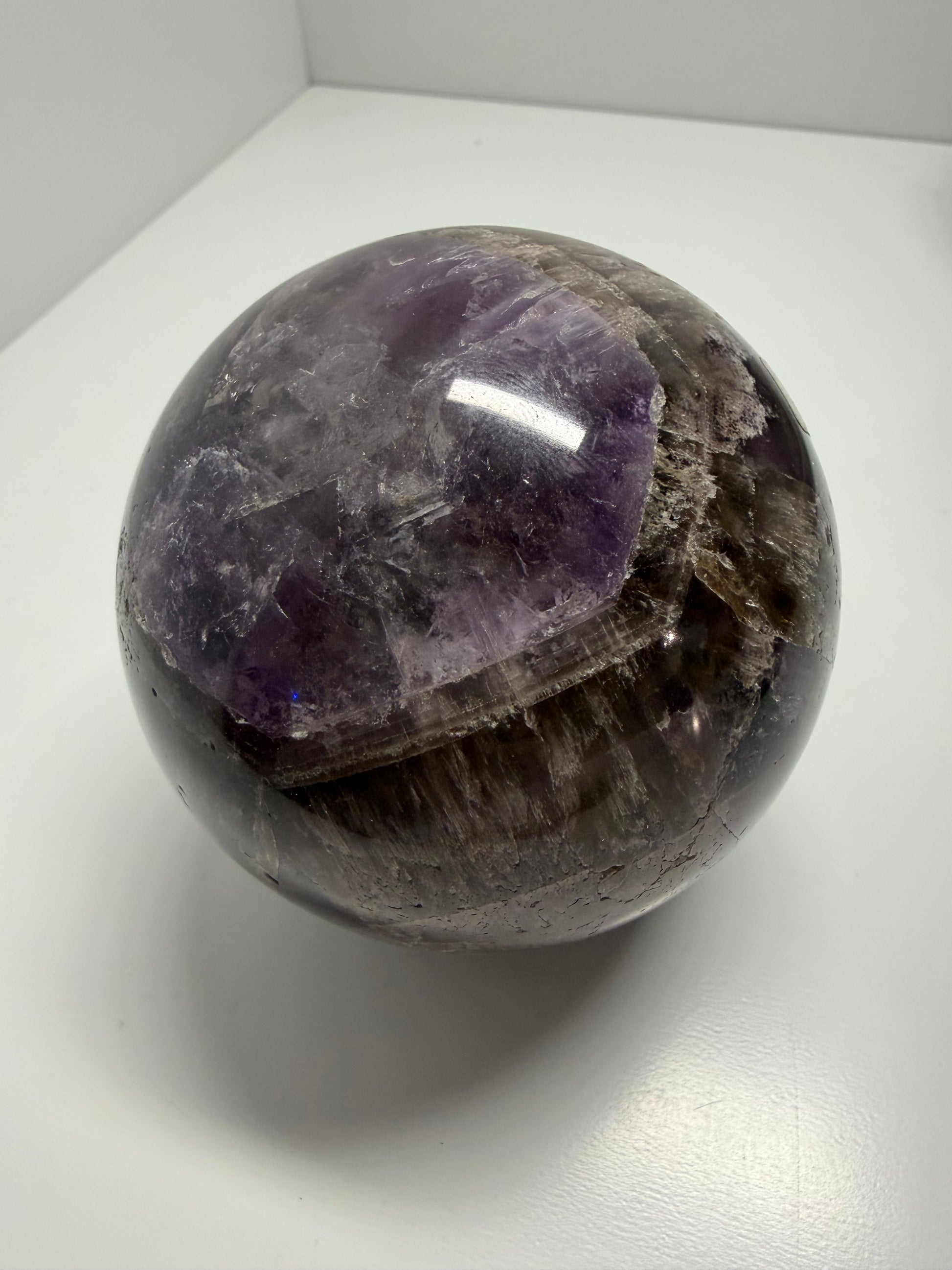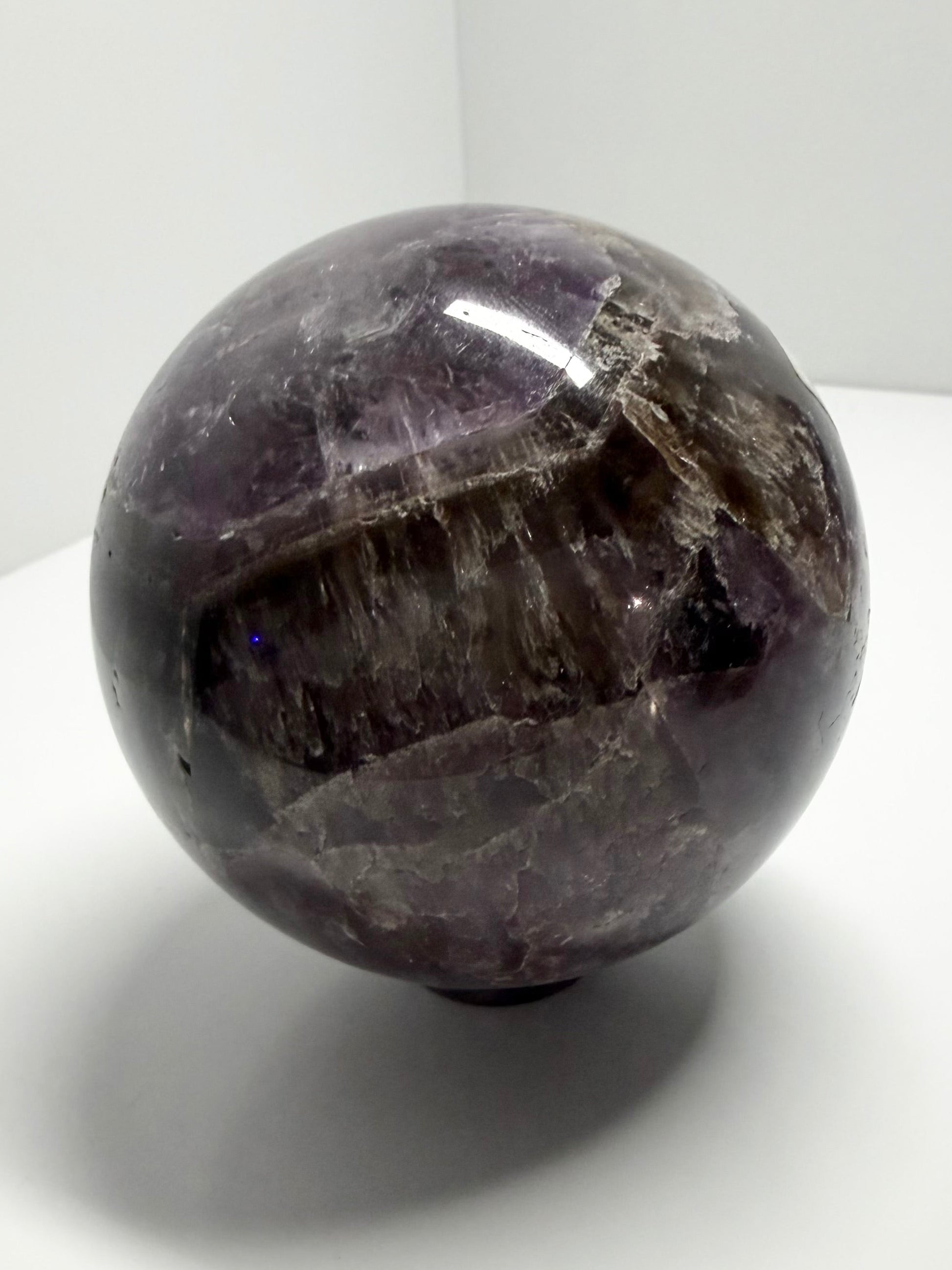 Unlike many enhanced or mislabeled stones on the market, Super 7 is never dyed or heat treated—its depth, banding, and inclusions are entirely natural. This sphere showcases rich smoky-violet tones with visible internal veils and mineral layers, giving it incredible dimension and character.