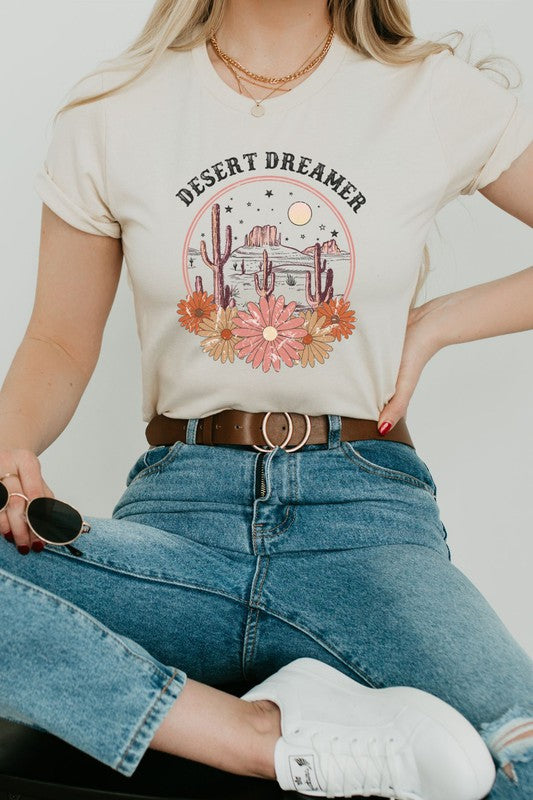 Desert Dreamer Graphic Tee is printed on the popular Bella Canvas 6400 Women's Relaxed Short Sleeve T-Shirt. Lightweight and super soft, this shirt offers a comfortable fit for effortless style.