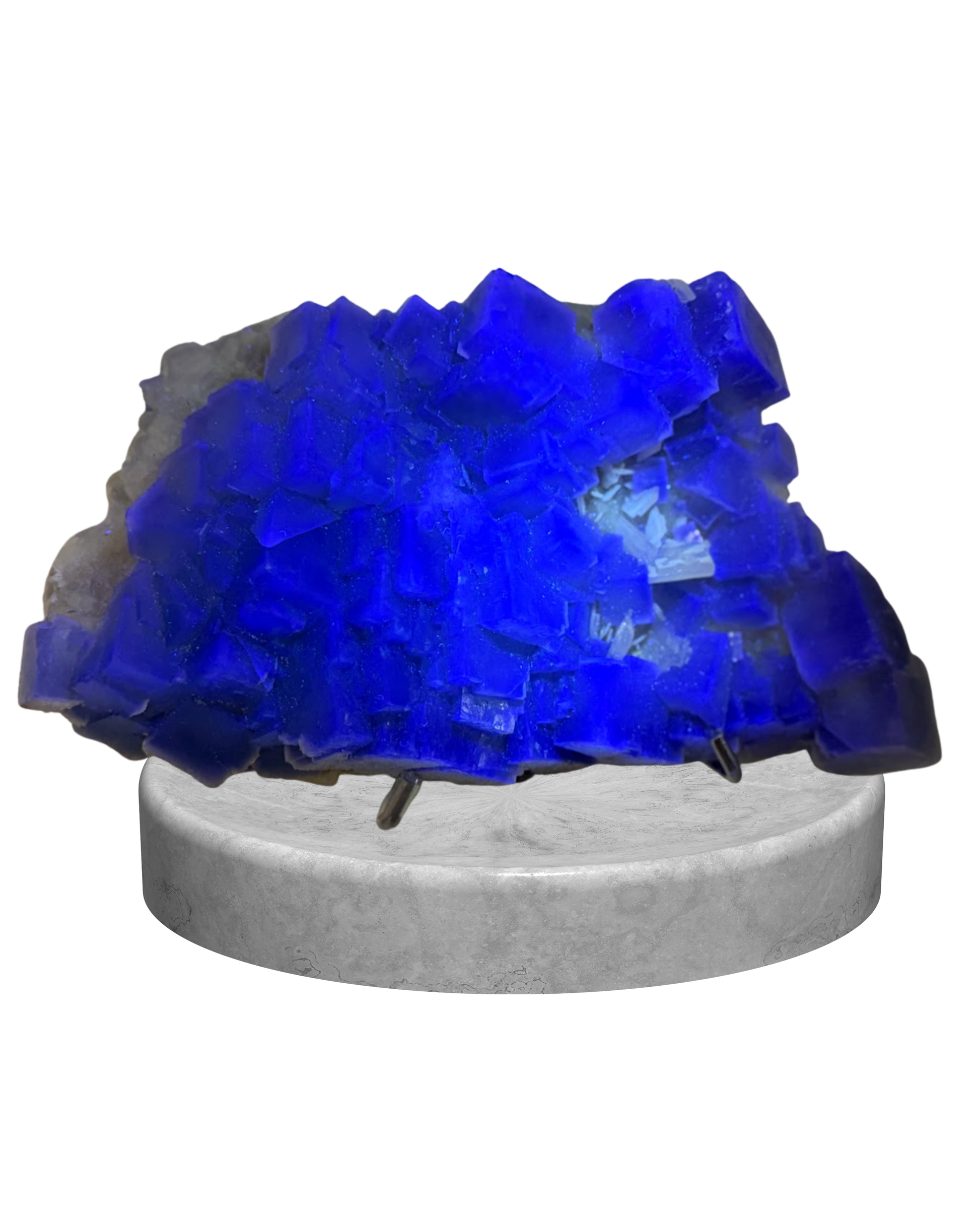 This exceptional YGX Fluorite specimen from China displays intense electric-blue coloration with sharply defined cubic crystal growth and strong natural luster. YGX fluorite is internationally recognized for its vivid saturation, architectural formations, and pronounced UV reactivity, placing it among the most sought-after modern fluorite localities.