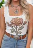 Slip into effortless elegance with this charming knit sweater vest! Crafted from soft, breathable fabric that keeps you cozy without the heat, it's your new go-to for warm-weather adventures. The delicate floral print brings a touch of rustic romance, while the scalloped square neckline adds a playful vintage twist. Whether you're dancing at a country festival or enjoying a breezy summer day, this lightweight layer delivers all-day comfort with undeniable style. 100% Viscose