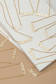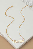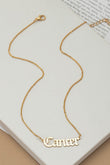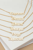 Laser cut zodiac sign pendant necklace written in Old English font.