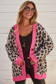 Leopard Colorblock Button Down Oversize Cardigan