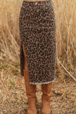 Add a wild twist to your wardrobe with this standout denim skirt. Designed with a bold print and a daring side slit, it brings just the right touch of edge to your look. The casual hemline adds an effortless vibe, making it easy to mix sophistication with fun. Step out in confidence and let your style roar. Cotton/Polyester/Spandex