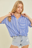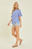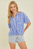 Light Airy Stripe Gauze Button Down Shirt in Ocean Blue