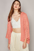 Open Weaving Long Sleeve Hoodie Sweater Cardigan in Coral