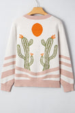 Throw on Paulina Desert Cactus Front Sweater when you need an easy outfit that still looks pulled together. Desert cactus print adds trendy boho vibes to any casual look. Soft knit fabric keeps this cactus cardigan warm and comfy. Buttoned front design makes layering this cardigan easy and chic. Relaxed fit flatters all shapes for effortless styling. Material: 52%Viscose+26%Polyester+22%Polyamide.