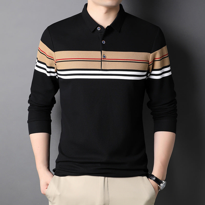 Long-Sleeved Striped Polo Men T-Shirt