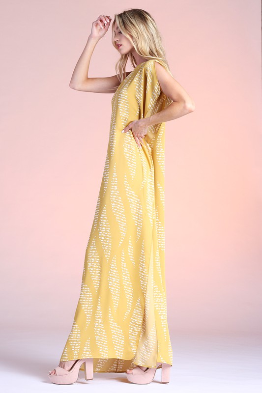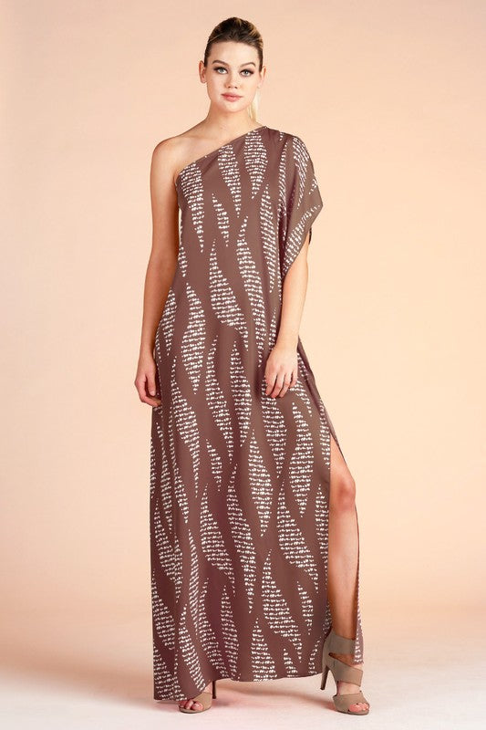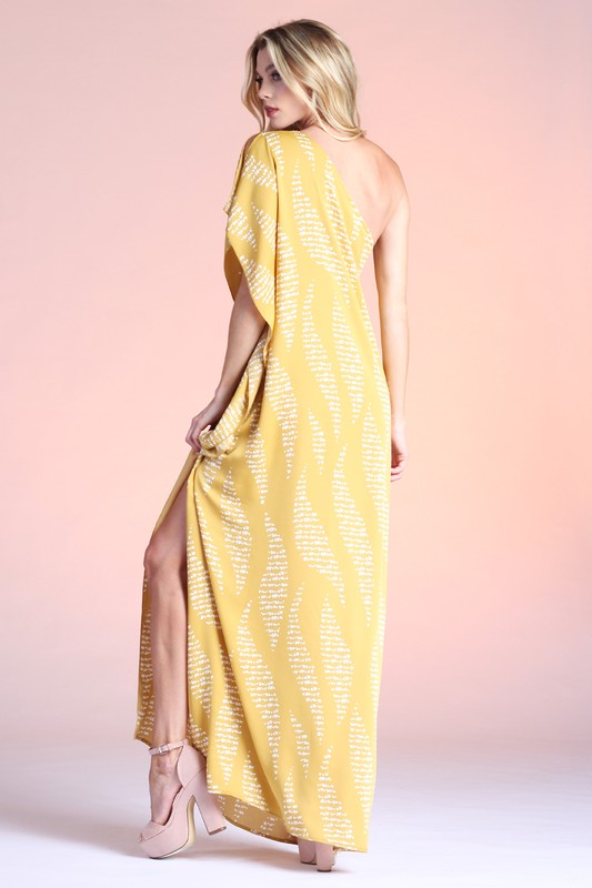 Wavy Texture Print One Shoulder Maxi