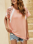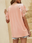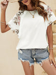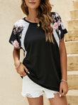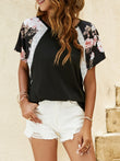 Women's Flutter Sleeve Print Contrast Panel Tee